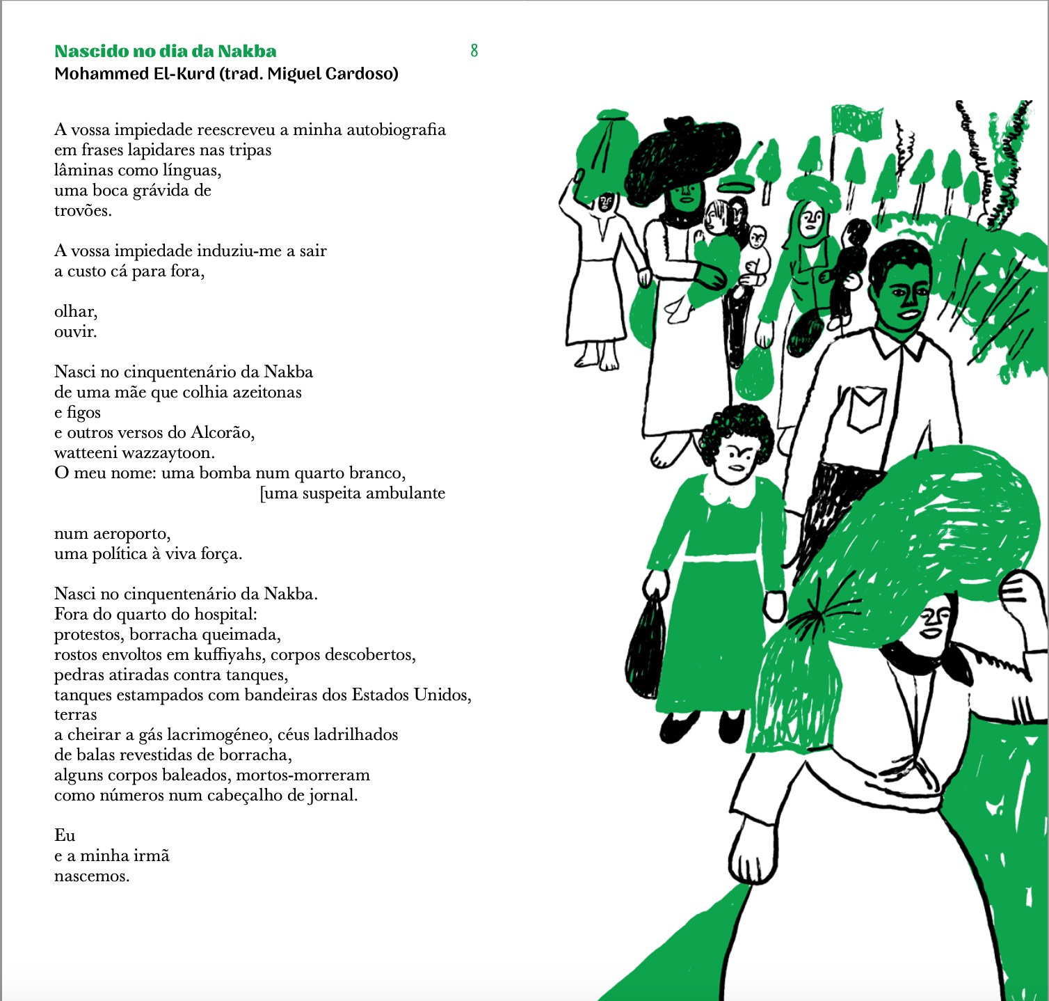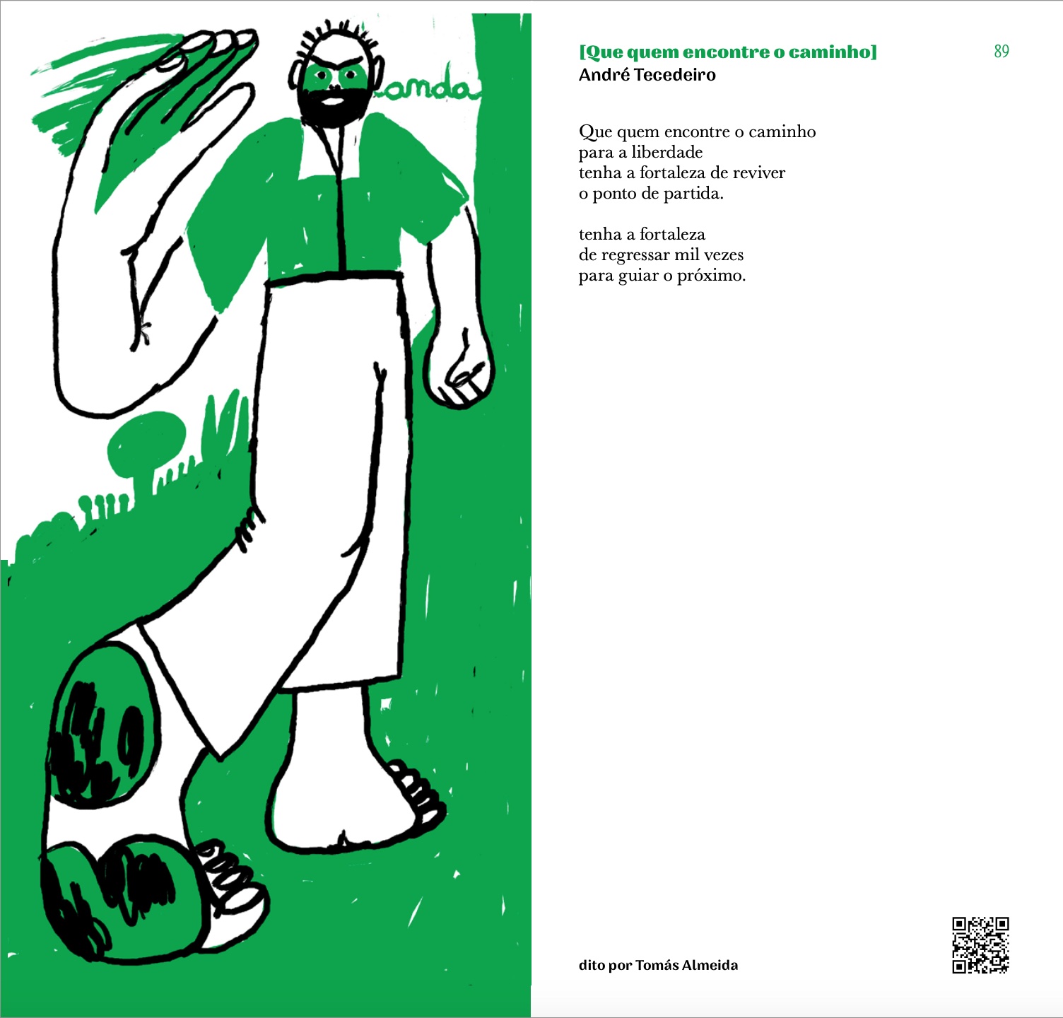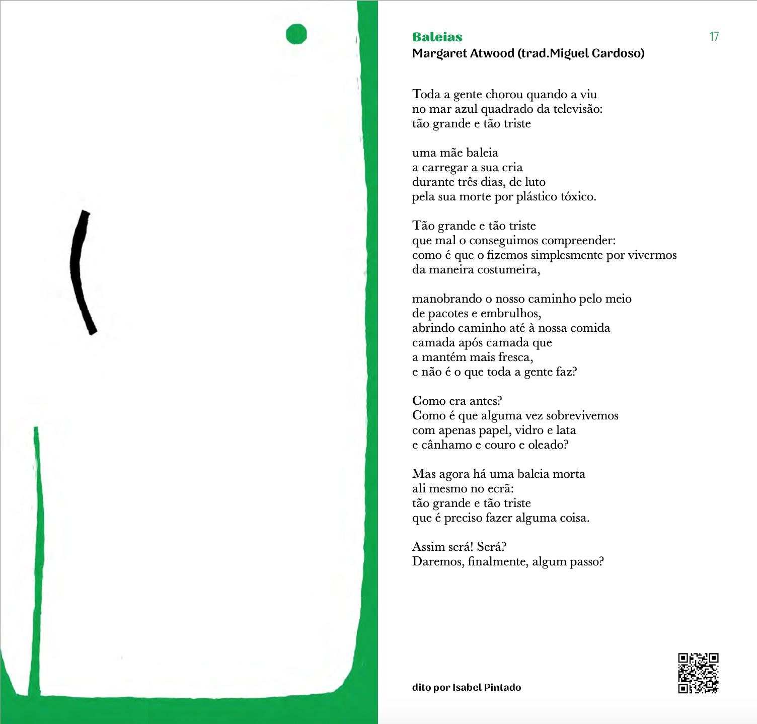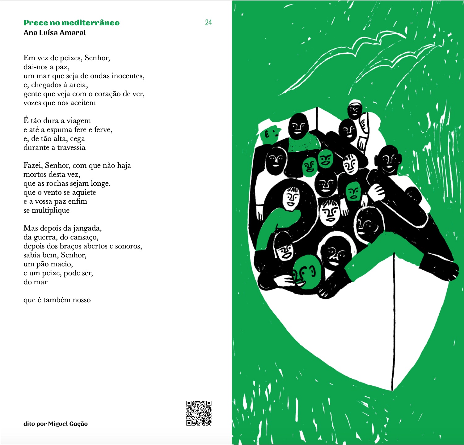 Poemas: Adelaide Ivánova, Adília Lopes, Alberto Pimenta, Ana Hatherly, Ana Luísa Amaral, André Tecedeiro, António Gedeão, Armindo Rodrigues, Carlos de Oliveira, Conceição Evaristo, Eugénio de Andrade, Fernando Assis Pacheco, Fernando Namora, Ferreira Gullar, Francisco Mallmann, Helder Moura Pereira, Jaime Cortesão, Jacques Prévert, João Monge, José Afonso, José Carlos Ary dos Santos, José Gomes Ferreira, José Mário Branco, Luís Quintais, Manuela de Freitas, Manuel Alegre, Margaret Atwood, Margarida Vale de Gato, Maria Velho da Costa, Mário Cesariny, Mário Dionísio, Mário-Henrique Leiria, Martin Niemöller, Miguel Torga, Mohammed El-Kurd, Natália Correia, Nazim Hikmet, Noémia de Sousa, Pedro da Silva Martins, Rabindranath Tagore, Raquel Lima, Regina Guimarães, Ruy Belo, Sérgio Godinho, Shervin Hajipour, Sophia de Mello Breyner Andresen, Virgínia Dias.