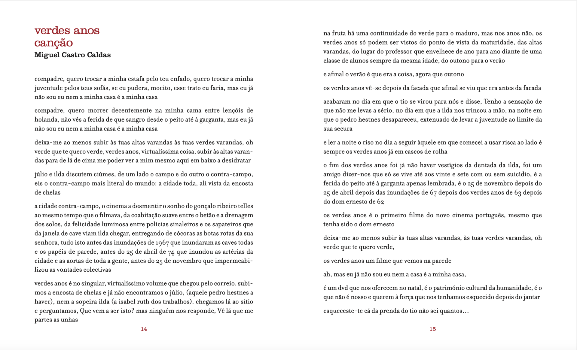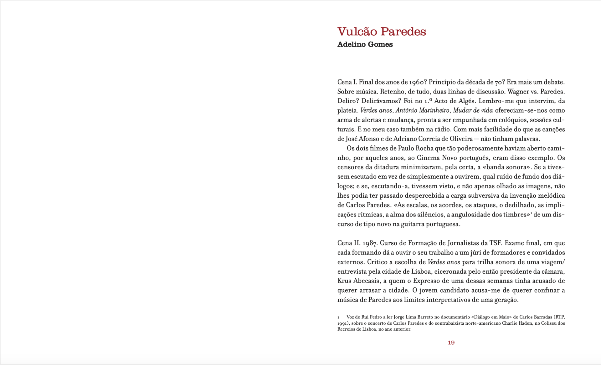 Textos: Adelino Gomes, Daniel Abrunheiro, Domingos Morais, Gonçalo M. Tavares, Irene Pimentel, Miguel Castro Caldas, Miguel Martins e Rui Pina Coelho