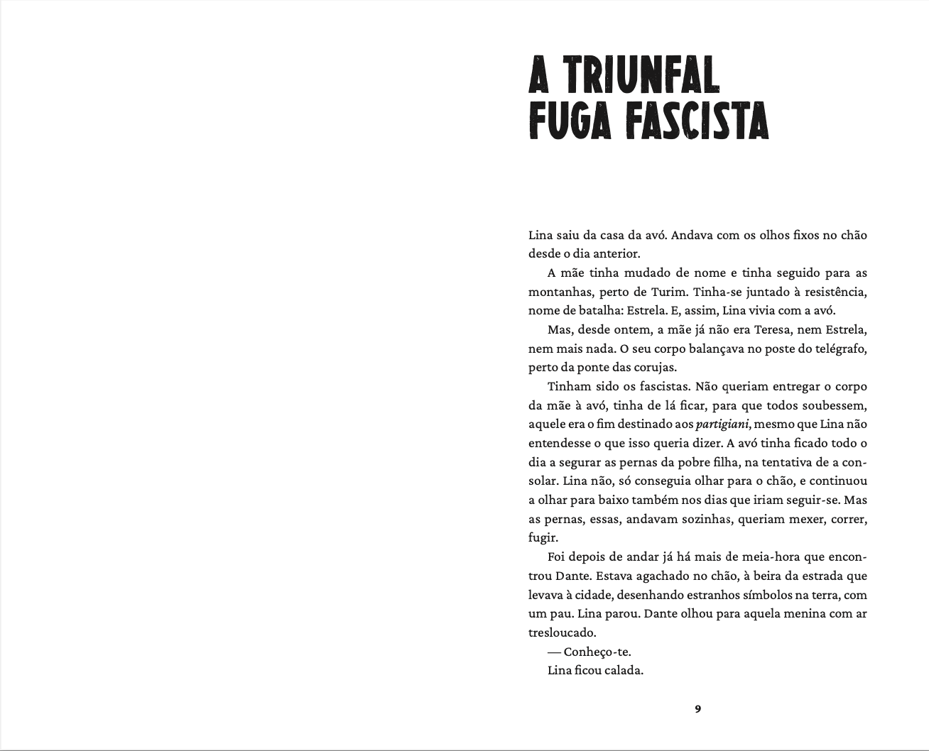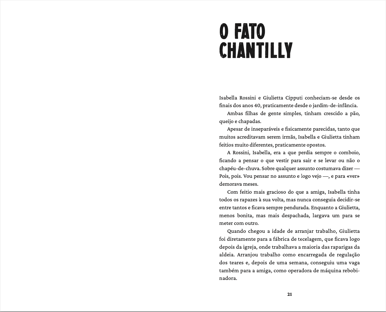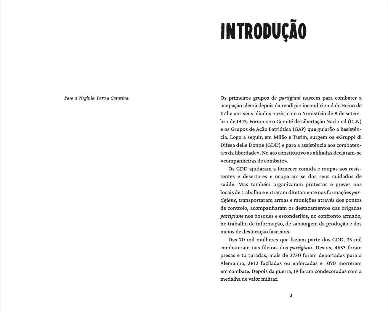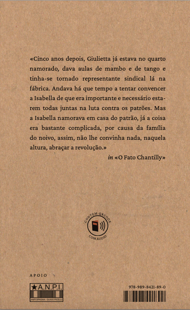 Situados na Itália da Segunda Guerra Mundial e do pós-guerra, os dois contos de estreia de Antonella Gilardi são inspirados em pessoas que existiram e em factos que aconteceram, mas neles a imaginação realiza o desejado resgate das mulheres na História.