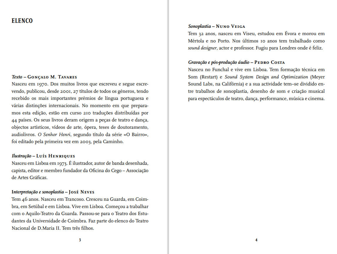 Eis o audiolivro de O Senhor Henri (Ed. Caminho), o primeiro dos habitantes do "Bairro" de Gonçalo M. Tavares a entrar no catálogo da BOCA, inaugurando a coleção "BOCA DE CENA", dedicada ao teatro.